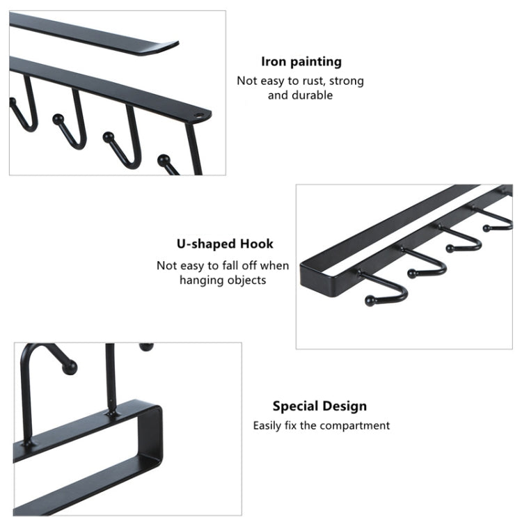 6 Even Iron Hook Hanging Cup Holder Cabinet Storage Hanger(Black)