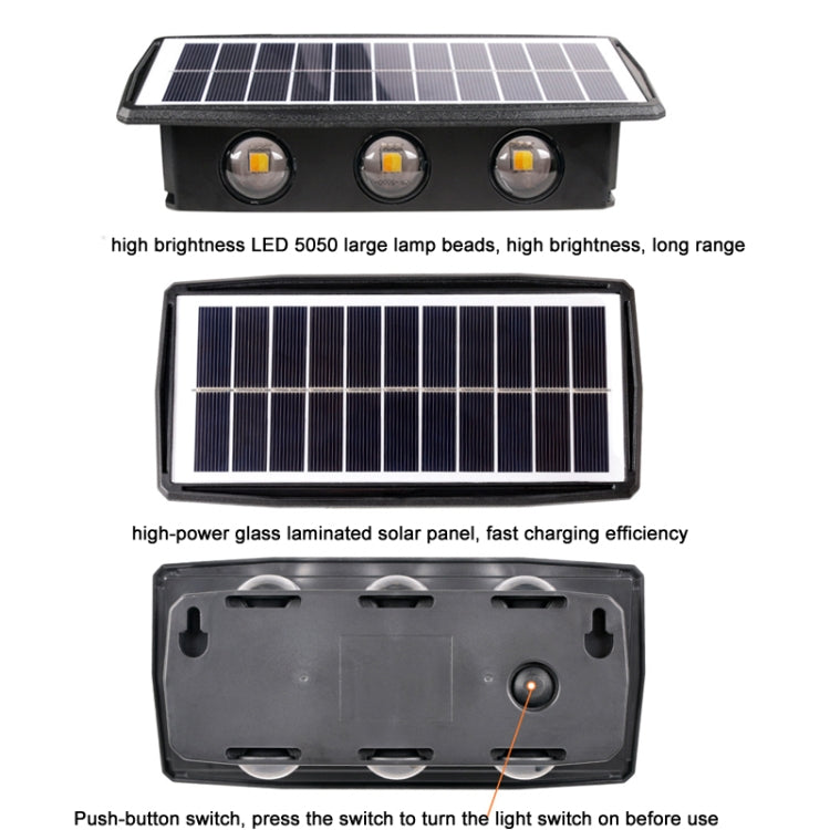 6LED Solar Wall Lamp Outdoor Waterproof Up And Down Double-headed Spotlights(Warm Light)