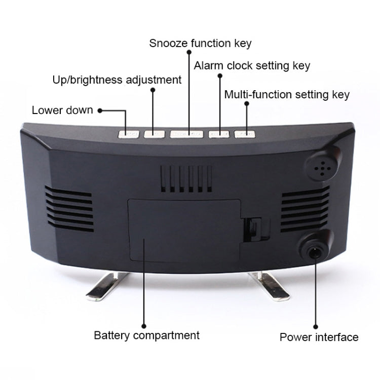 7816 Curved Screen LED Temperature / Humidity Display Multifunctional Clock(White)
