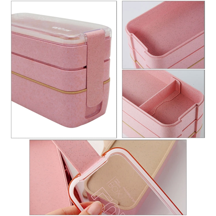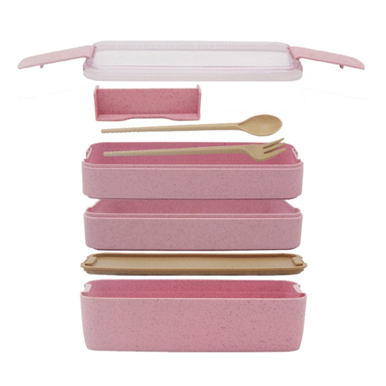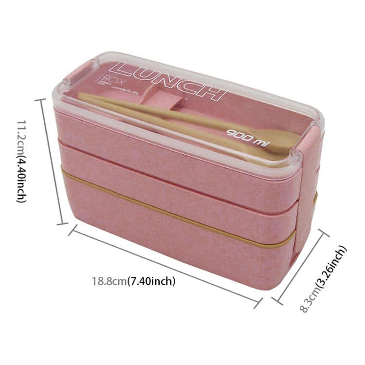 900ml 3 Layers Bento Box Lunch Box Food Container Wheat Straw Material Microwavable Dinnerware Lunchbox(Pink)