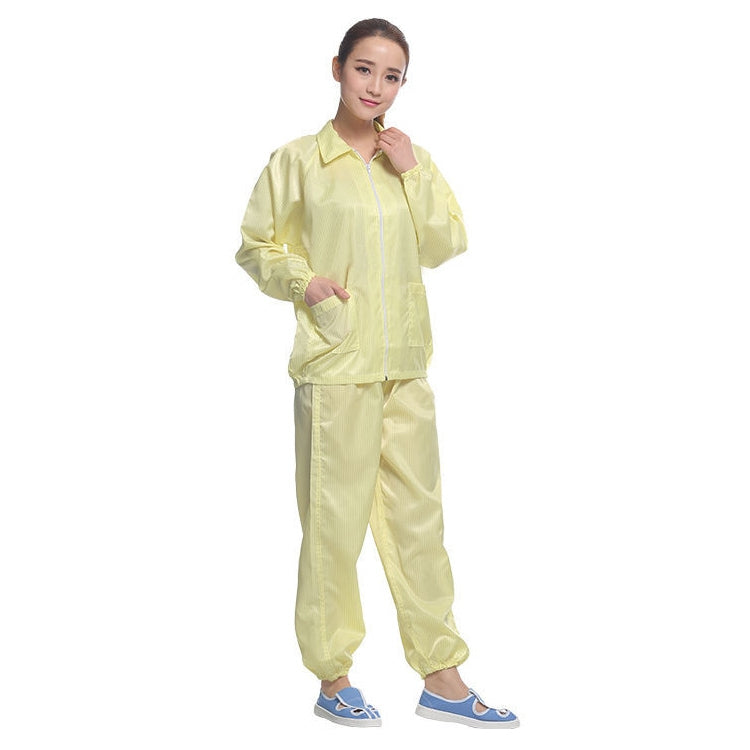 Anti Static Split Lapel Dustless Clothing Food Protection Stripe Clean Clothes, Size:XXXXL(Yellow)