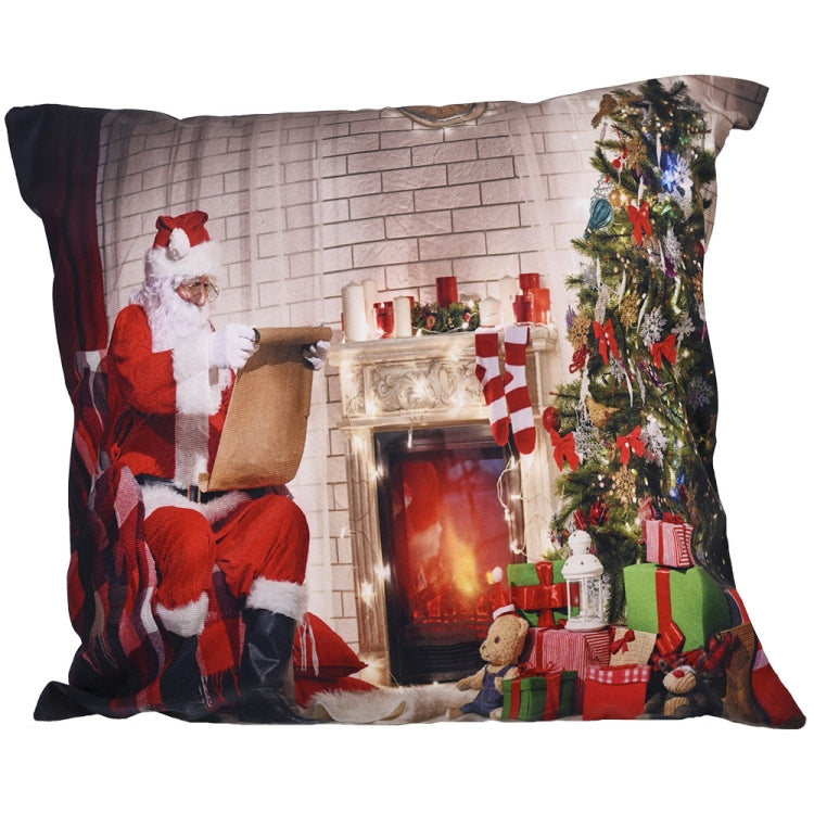 Christmas Ornaments Flannel Pillowcase Cartoon Printing Square Pillowcase Without Pillow Core(Santa Claus Fireplace)