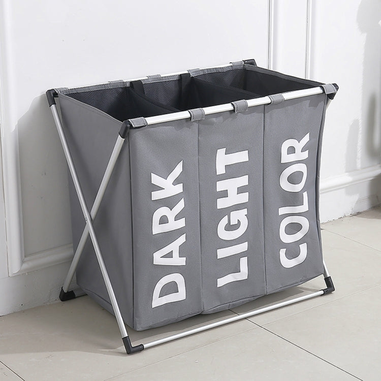Collapsible Three Grid Dirty Clothes Laundry Hamper Organizer Home Storage Basket(Pink)