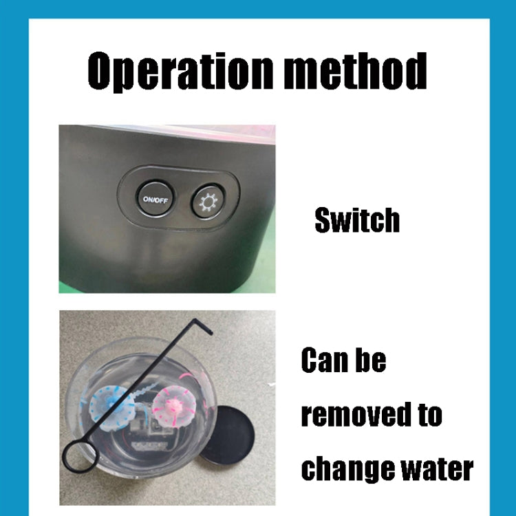 2. Inject clean water again, and the water surface is 1 cm away from the mouth of the bottle. Insert the USB cable, turn on the switch button, and add 2-3 drops of detergent and wait 1 minute for the detergent to disperse