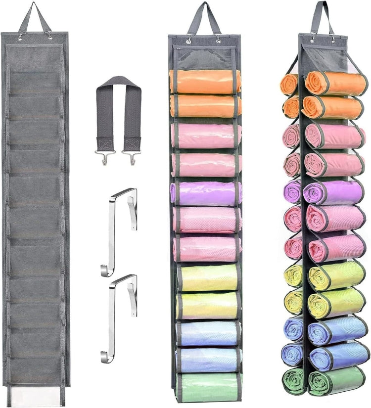 Double-Sided 24 Grids Storage Hanging Bag Hanging Storage Closet Behind Door Storage Organizer(Grey)