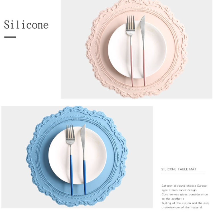 Embossed Silicone Heat Insulation Pad Decorative Mat Thick Round Silicone Pot Mat(Light Blue)