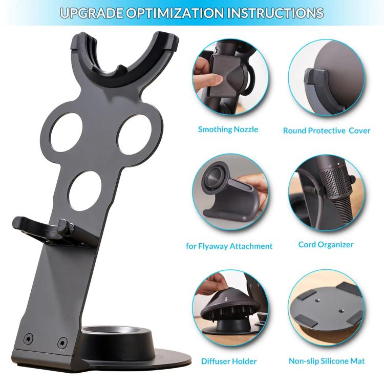 For Dyson Supersonic Hair Dryer Desktop Holder Metal Stand with Cable Organizer(Black)