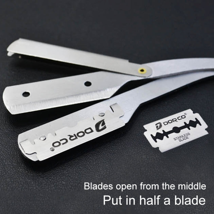 Hairdresser Vintage Razor Stainless Steel Double-sided Blade Holder Haircut Shaved Eyebrow Knife Holder(Silver)