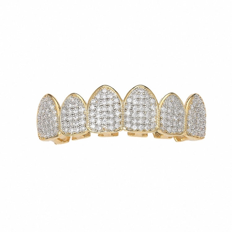 Halloween Accessories Micro-Inlaid Zircon Hip-Hop Braces, Colour: Gold Upper Teeth