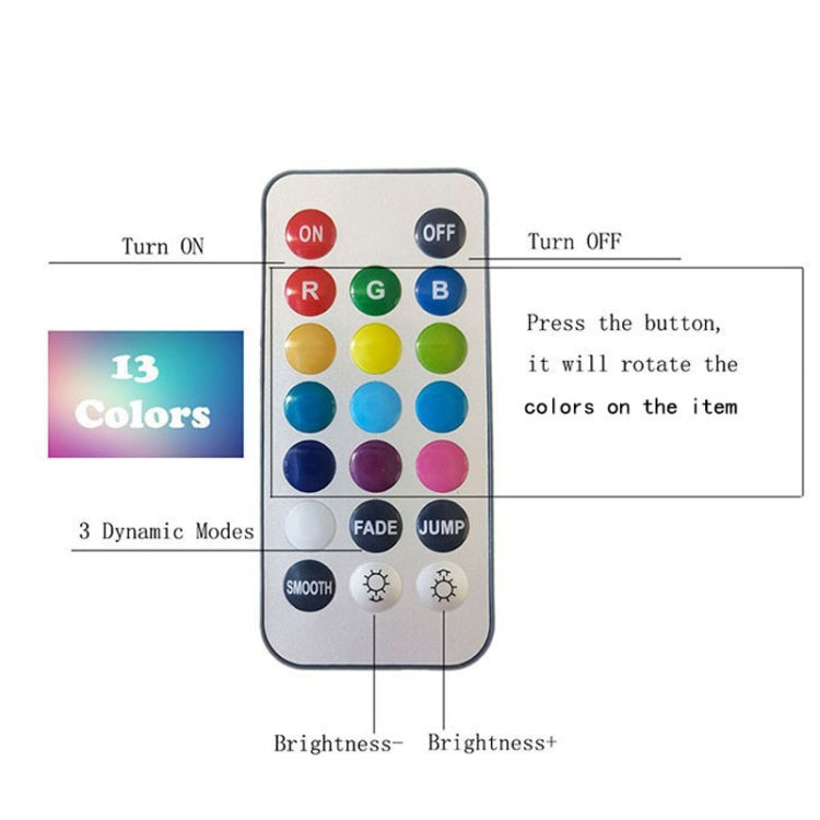 5. Remote control: 21 buttons, 13 colors, 3 gears switching, always on, gradient, fast flash