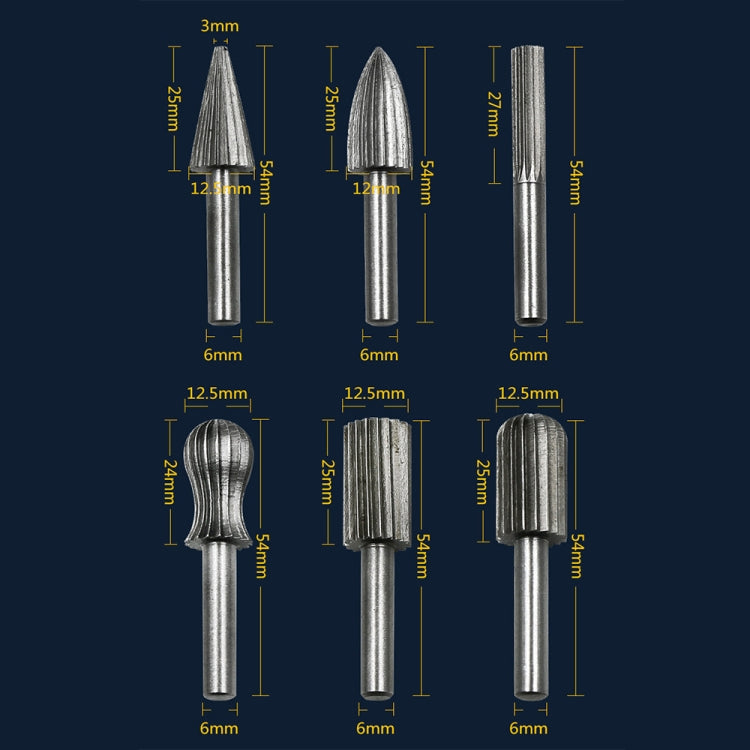 Hard High Carbon Steel Rotary Carving Knife Abrasive Processing Grinding Head Set(6pcs/set)