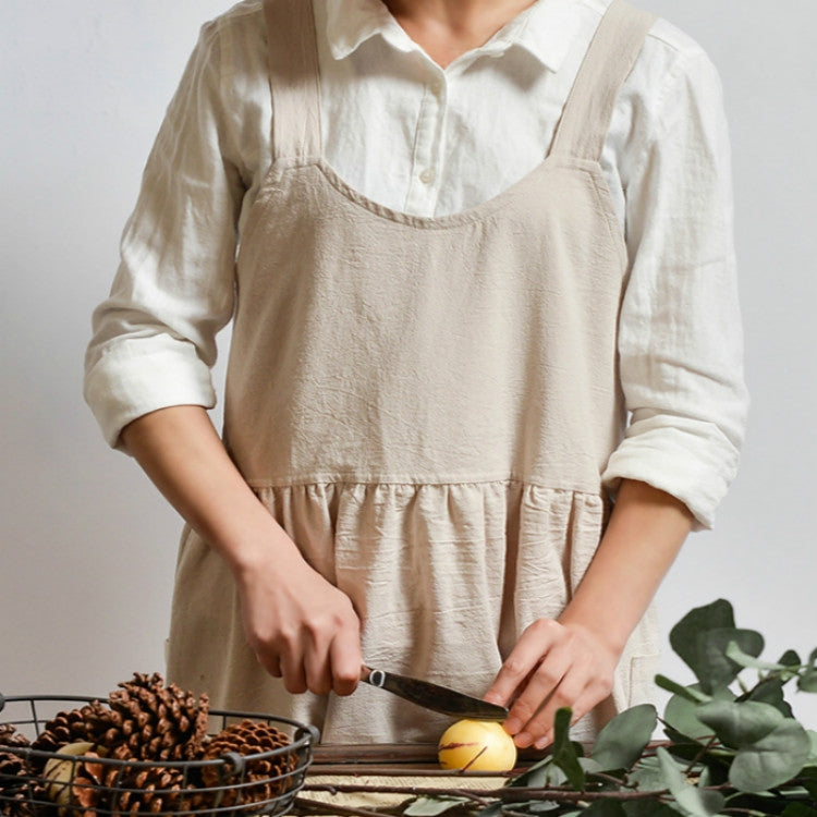 High Waist Cotton Linen Solid Color Apron(Almond)