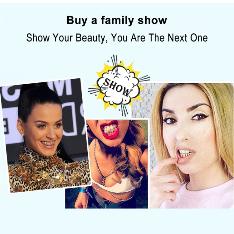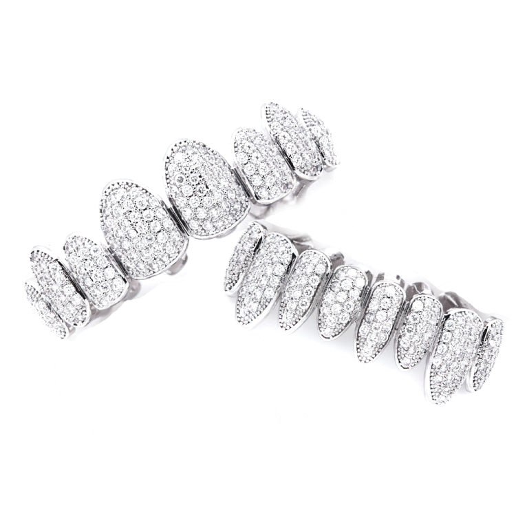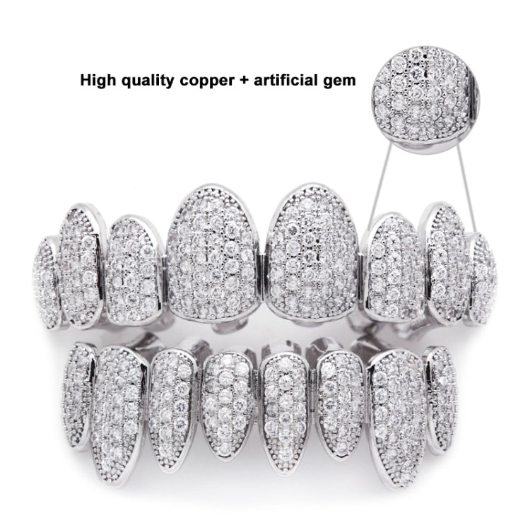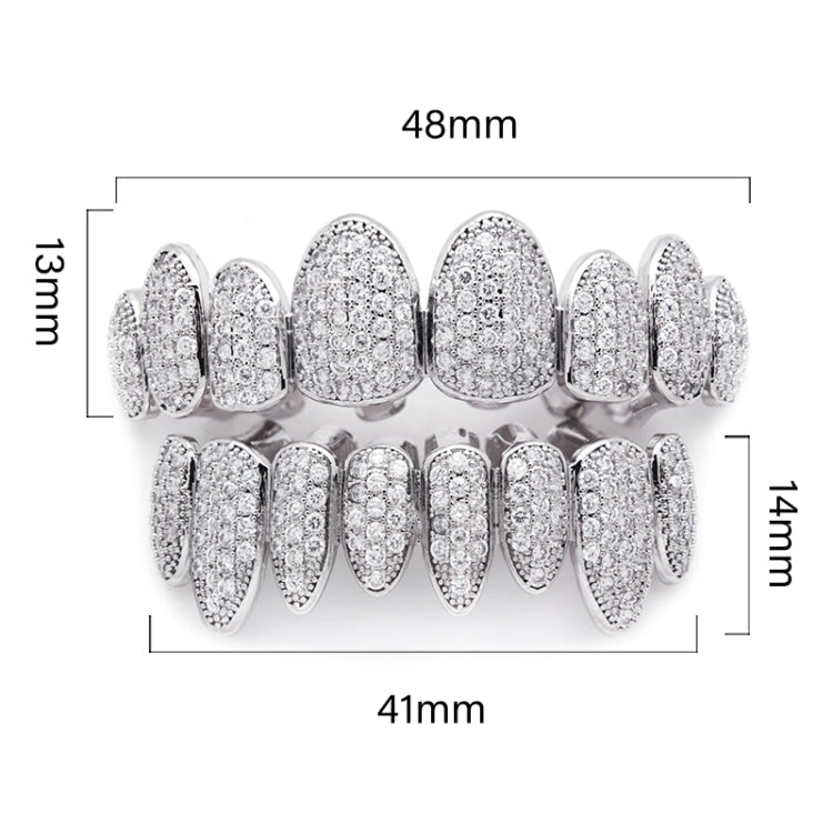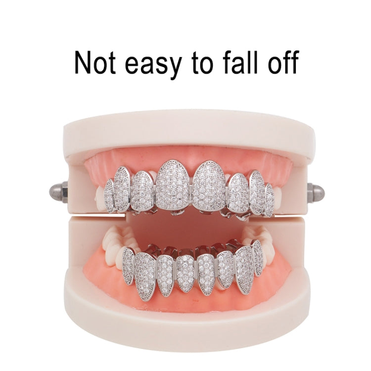 Hip Hop Braces Inlaid With Zircon, Eight Teeth Inlaid With Drill, Upper And Lower Dentures Set COS Props(Silver)