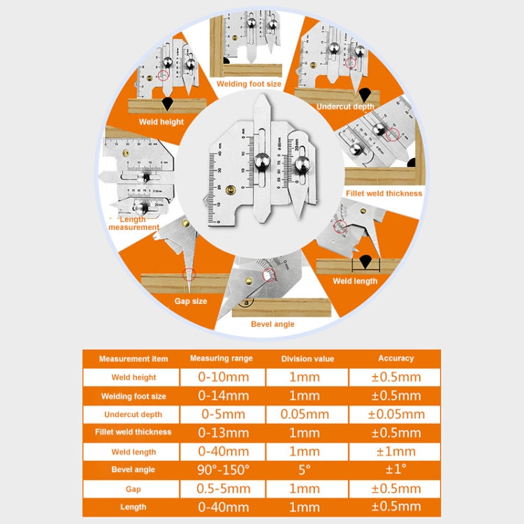 HJC40B Stainless Steel Welding Inspection Gauge Measuring Ruler