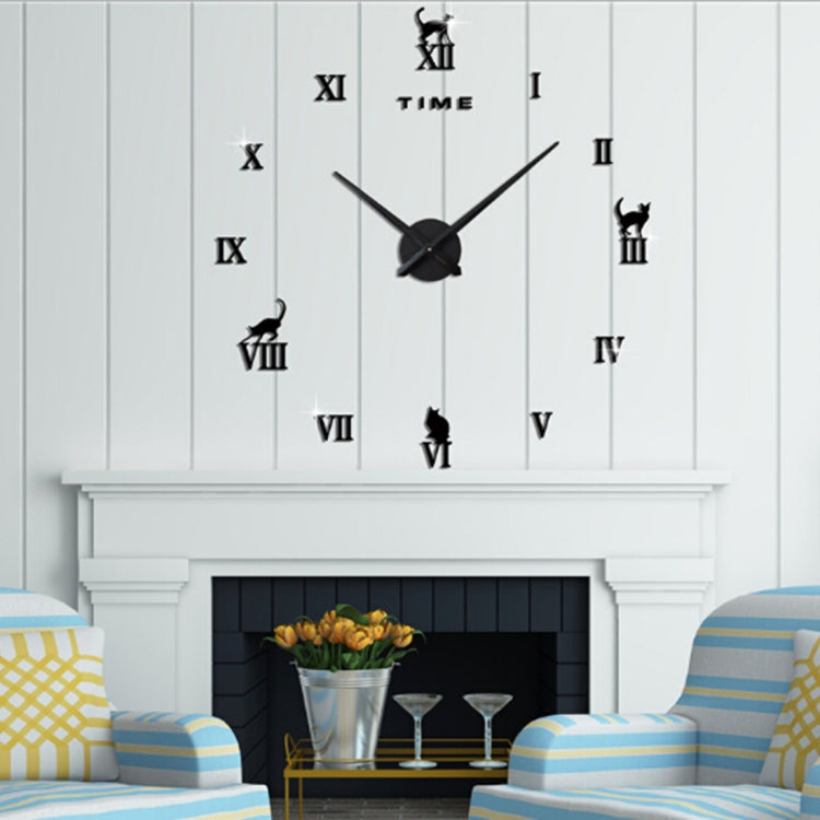 Home Office Decor Frameless Cat Shape Large Size DIY 3D Mirror Surface Wall Stickers Mute Clock, Size: 100*100cm(Black)