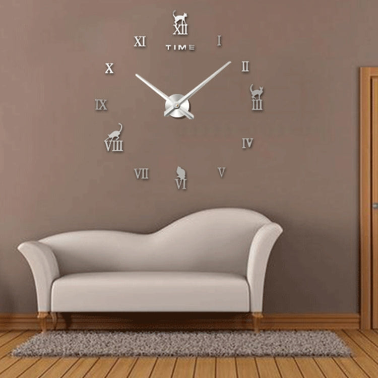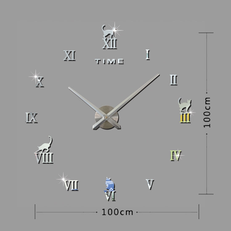 Home Office Decor Frameless Cat Shape Large Size DIY 3D Mirror Surface Wall Stickers Mute Clock, Size: 100*100cm(Silver)