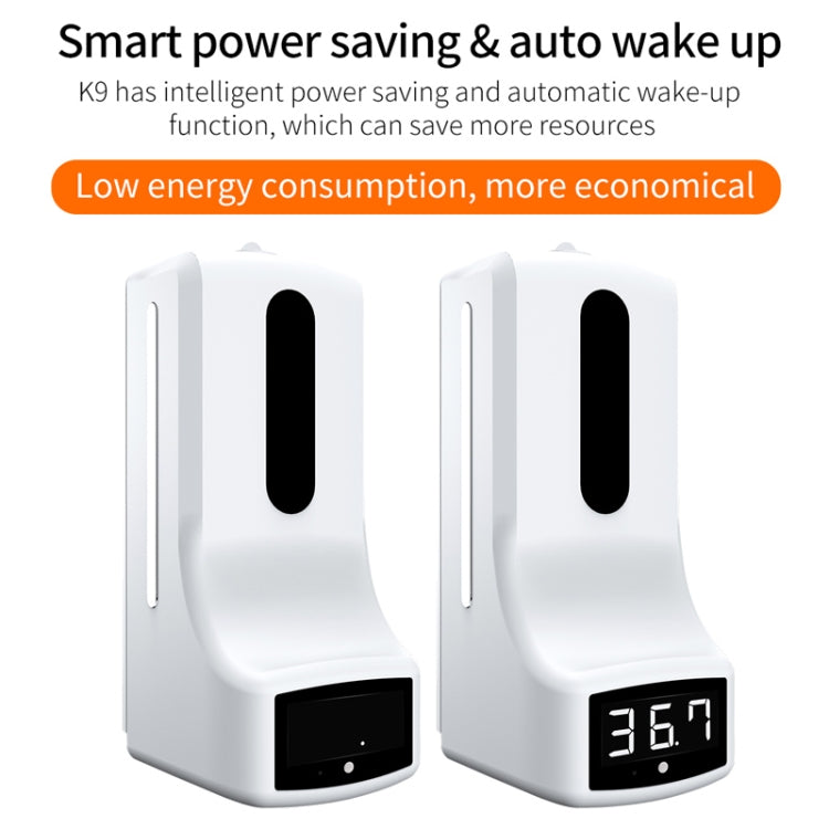 K9 Pro Handsfree Non-contact Body Light-sensitive Distance Sensor Thermometer + 1000ml Automatic Non-contact Liquid Soap Dispenser with Base Mount