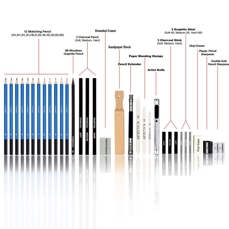 KALOUR 33 in 1 Sketch Pencil Set Beginner Brush Art Supplies(Black)
