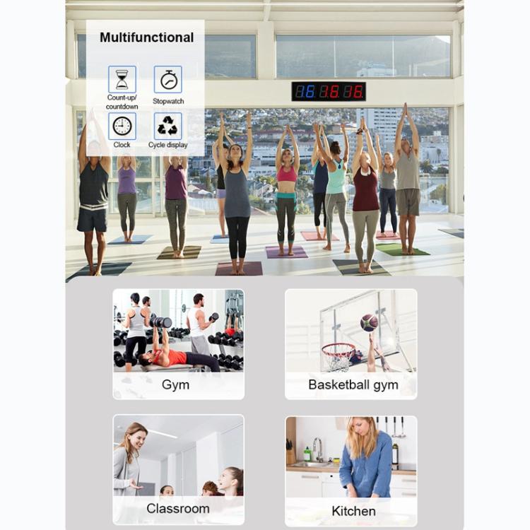 KYX--0040 4 inch 6-digit LED Sports Fitness Multi-function Timer, Plug:EU Plug(Black)