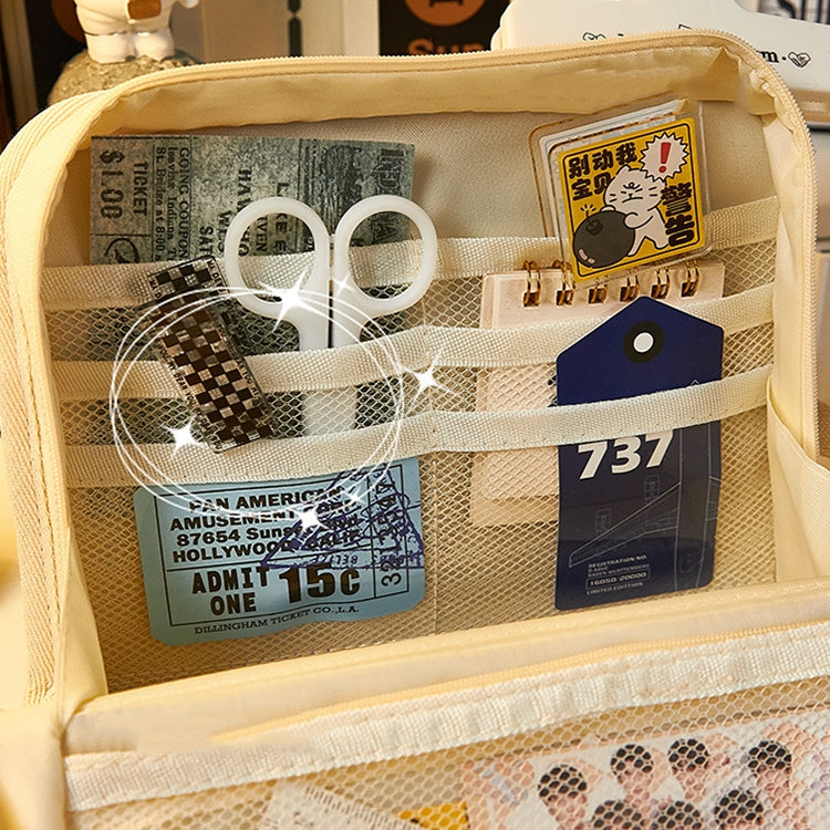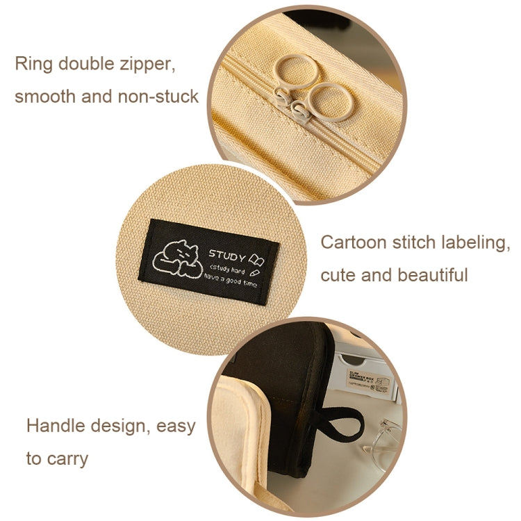 Large Capacity Canvas Pencil Case Student Stationery Storage Pencil Box(White)