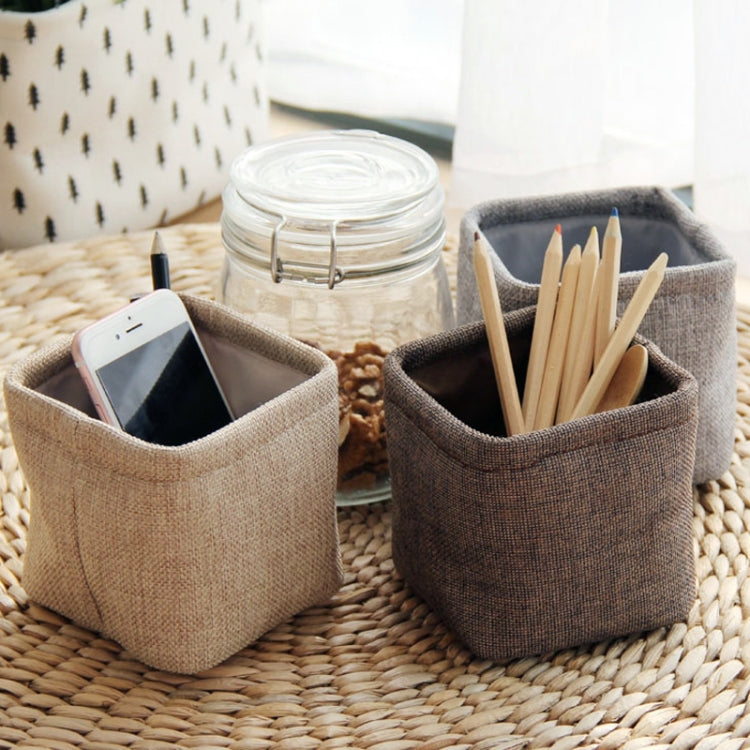 Mini Small Linen Pen Holder Desktop Cloth Simple Stationery Holders(Coffee)