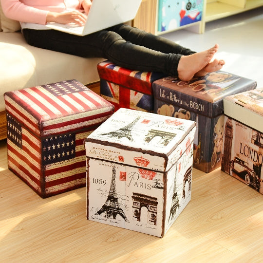 Multifunctional Storage Stool Can Sit Adult Folding Chair Home Change Shoe Bench Children Storage Box(Union Jack)
