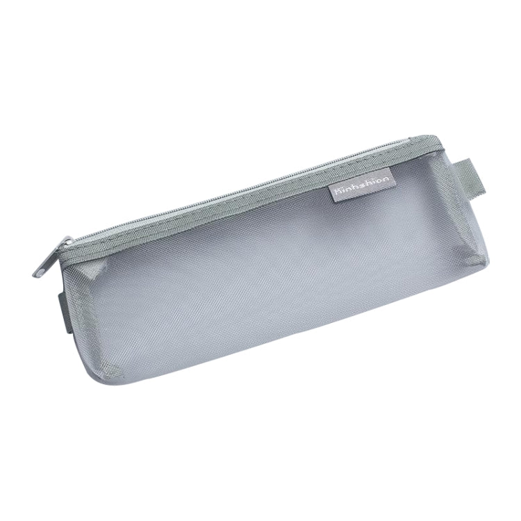 Nylon Simple Transparent Mesh Pencil Case Office School Supplies(Small Grey)