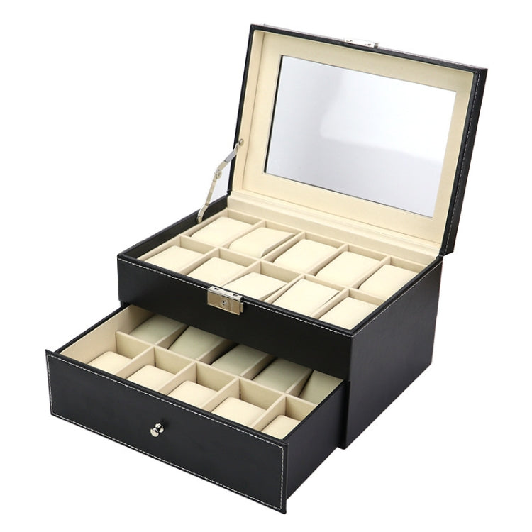 PU Leather Double Layer 20-Digit Watch Box Jewelry Gift Storage Box