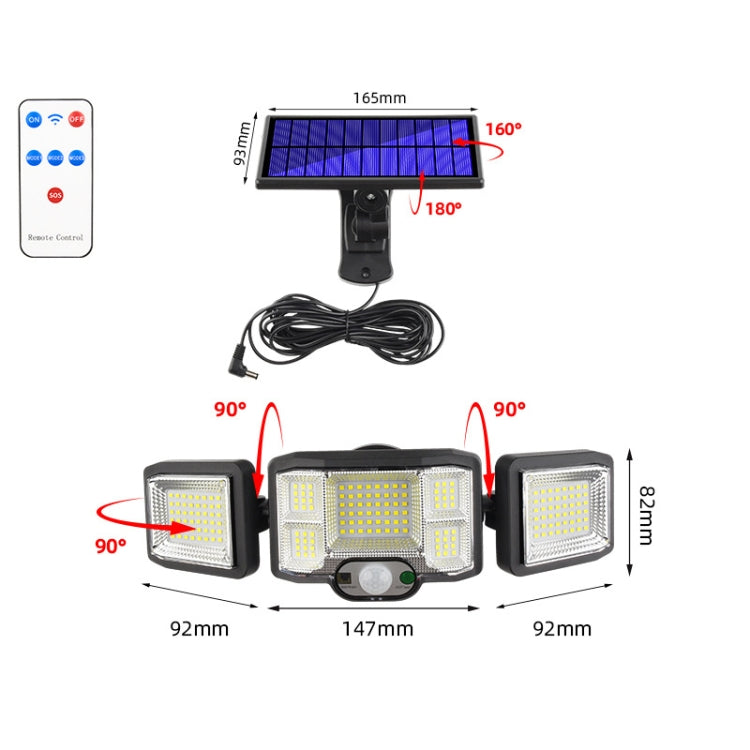 Remote Control Solar Wall Light LED Triple Rotation Sensor Flood Light, Specification: 192LED Split