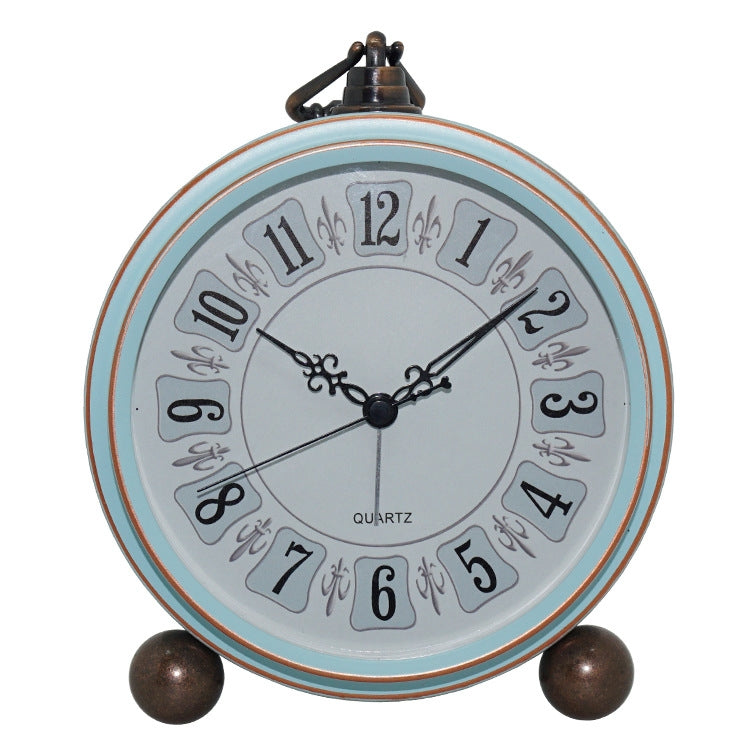 Retro Iron Alarm Clock Simple Desktop Quartz Clock, Style: Light Blue