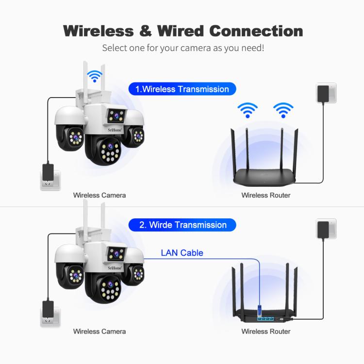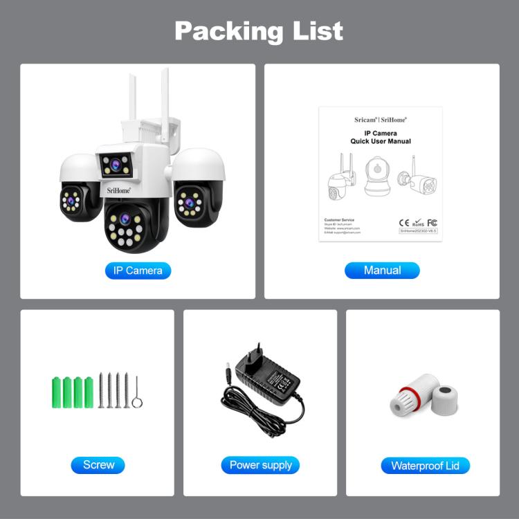 SriHome SH069 8MP 3X Digital Zoom HD Quad-lens Security Camera, Plug:UK Plug