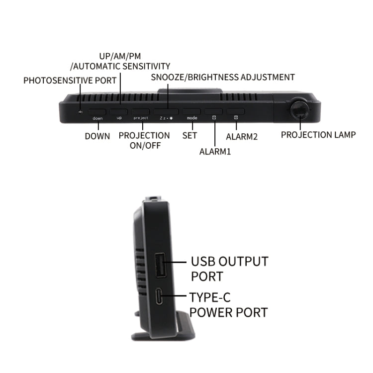7. USB Charging Port & Power-off Memory: The digital alarm clock with 5V/1A USB output interface, you can charge smartphones when sleeping. Projection function works only via AC power, But it comes with a battery backup system, the settings of alarm, time and radio will be remembered even during power outages.