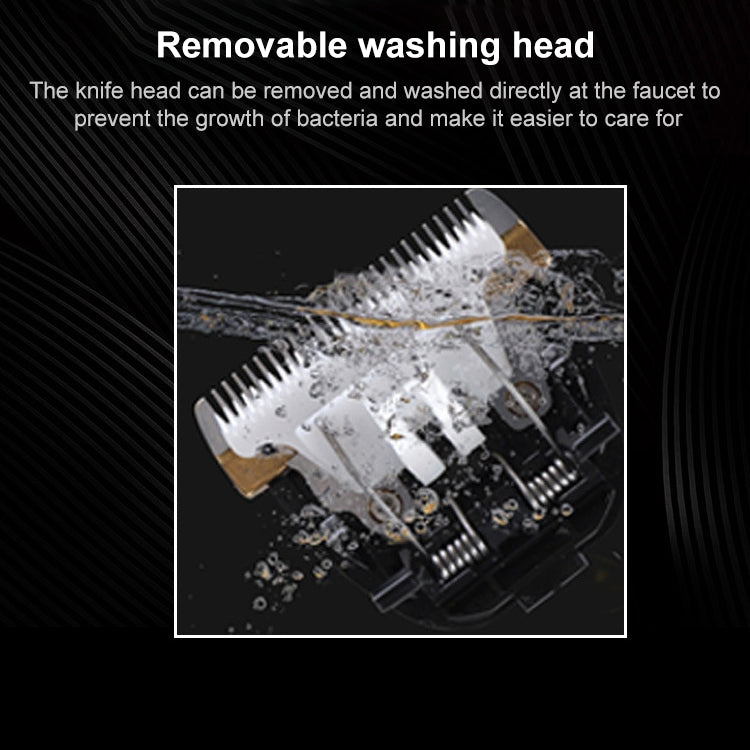 14. Accessories: push white blade x1, engraving blade x1, shaving blade x1, shaving blade x1, nose hair trimming blade x1, tray x1, power adapter x1, limit comb x4 (3/6/9 /12MM) comb, cleaning brush x1, limit comb x3 (3/5/7M), manual x1