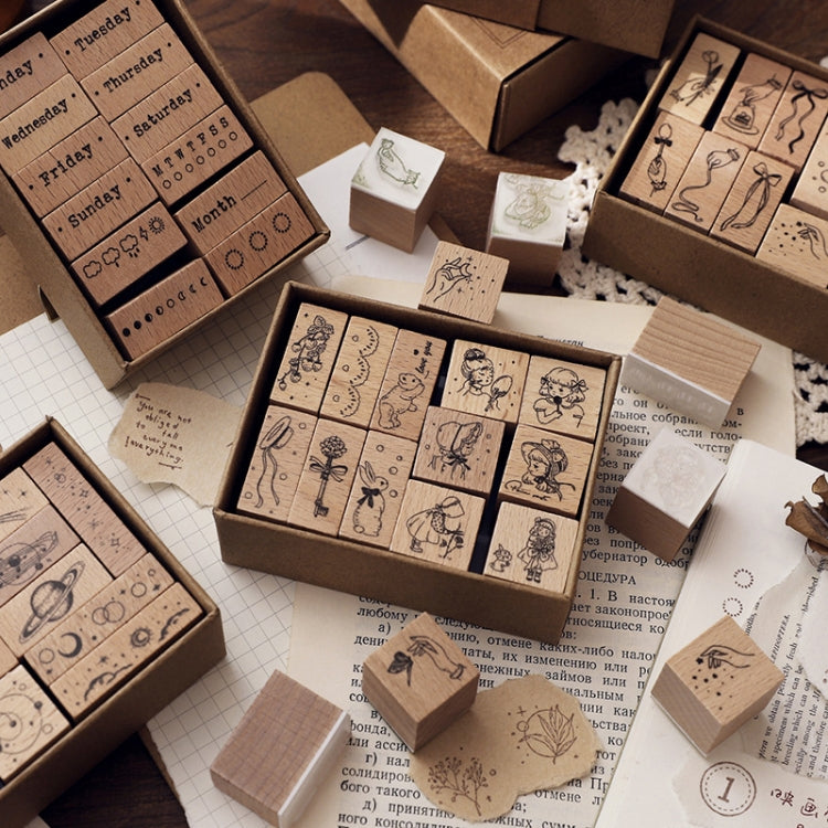 Vintage Beech Combination Seal Set Wooden Handbook Seal Set(Number Games)