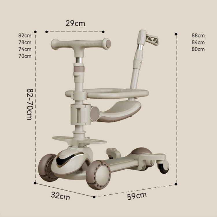 XOEYU K8 Multifunctional Adjustable Folding Children Scooter with Music and Lights, Color: Single Coffee