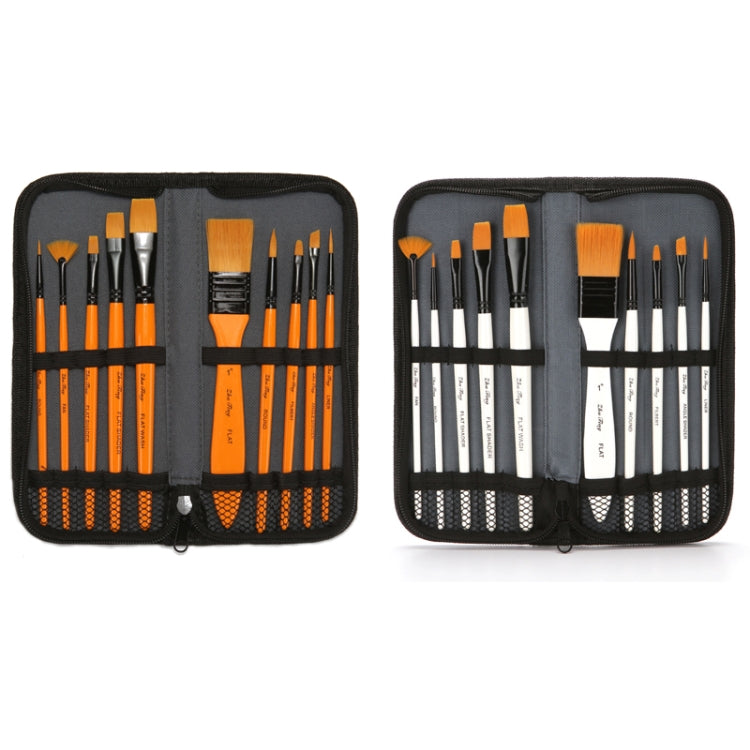 ZHU TING 10 In 1 Wooden Pole Nylon Wool Watercolor Pen And Board Brush Fan Shaped Painting Pen Set With Cloth BagZHUTING( Yellow Rod)
