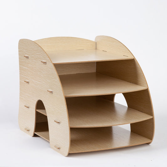 Office Supplies Curved Desktop A4 Storage Box Wooden File Rack Data Rack Shelf(Oak)