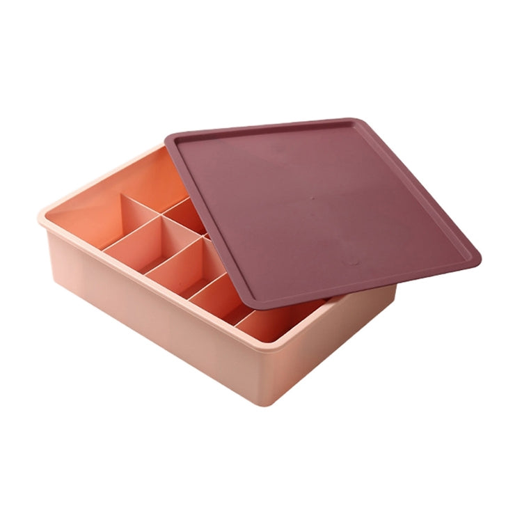 Contrast Color Underwear Storage Box Multi-Gate Plastic Bra Socks Storage Box 10 Grids with Cover(Pink)