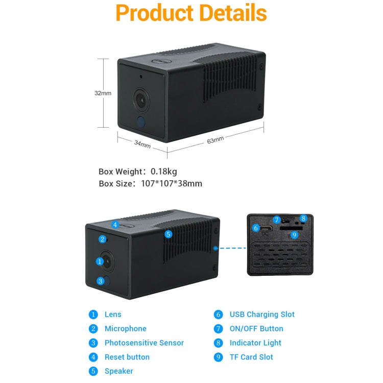 8. Support up to 128G TF card storage, support all-weather alarm recording, automatic recording coverage, and the alarm video can be viewed on the mobile APP
