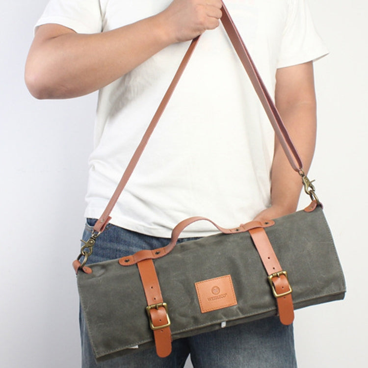 WESSLECO Canvas Roll Chef Knife Storage Bag(Army Green)