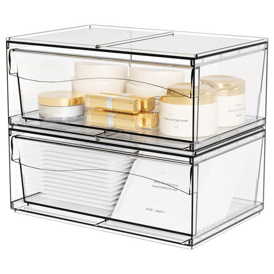 2pcs /Pack Stackable Makeup Drawer Organizer Acrylic Cosmetic Storage Box(Transparent)