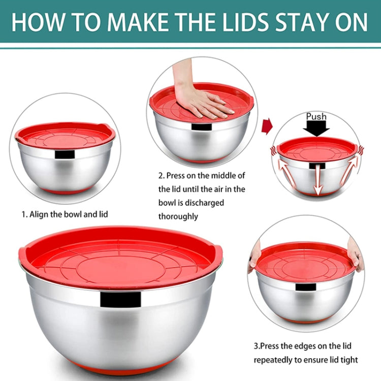 22cm With Colorful Silicone Bottom & Lid Salad Bowl Stainless Steel Thickened Basin(Color Random Delivery)