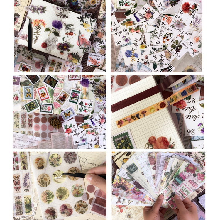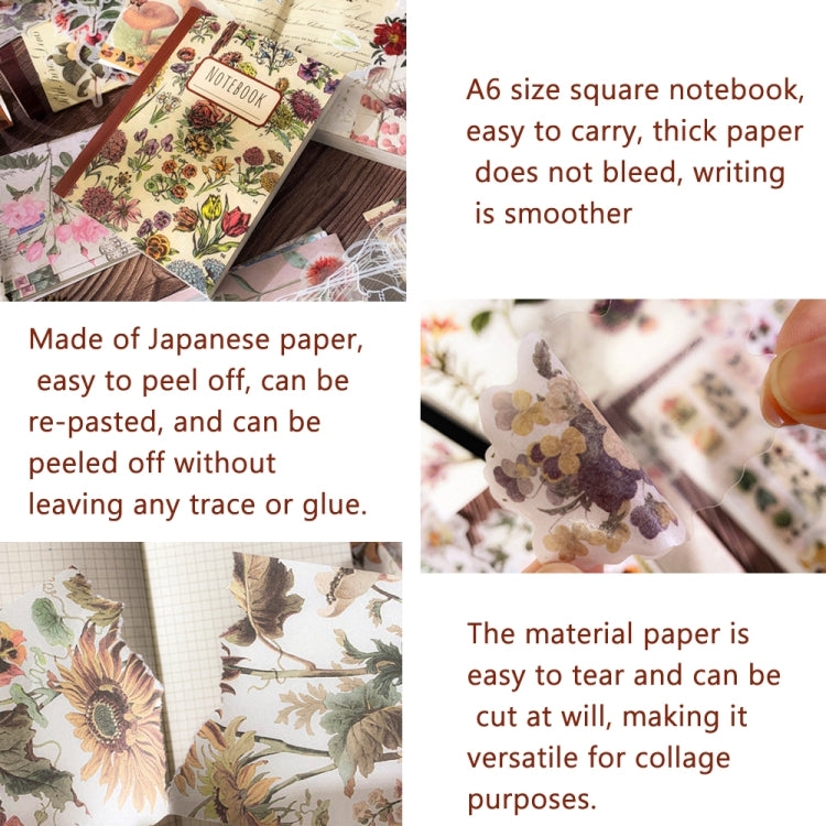 265 In 1 Retro Floral Scrapbook Set Includes A6 Notebook + Stickers + Tape + Stamps + Scrapbook Paper(SH011)