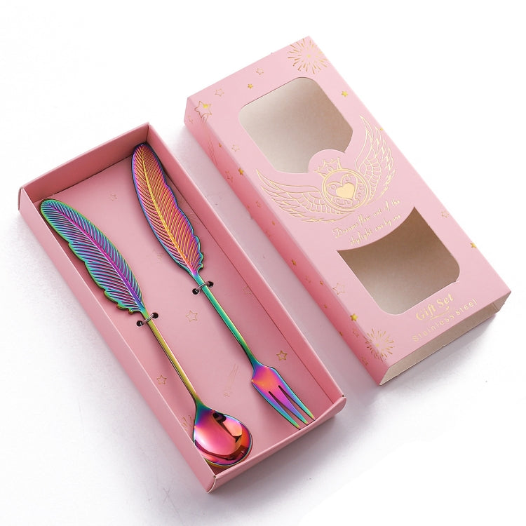 304 Stainless Steel Feather Spoon Fork Literary Tableware,Style: 2 In 1 Dazzle-Pink Box