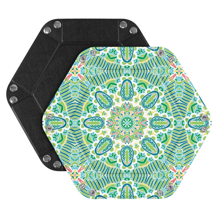 Hexagonal Desktop PU Storage Box Sundries Tray, Size:8 inch(Bohemian Green)