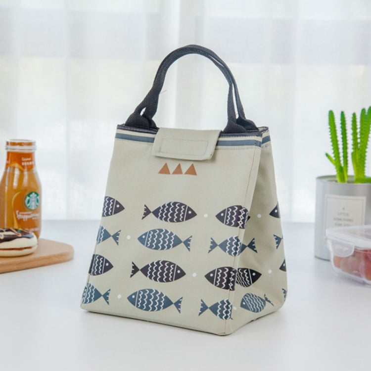 Portable Lunch Bag Oxford Cloth Fish Pattern Large Capacity Container Thermal Insulated Cooler(Light Gray)
