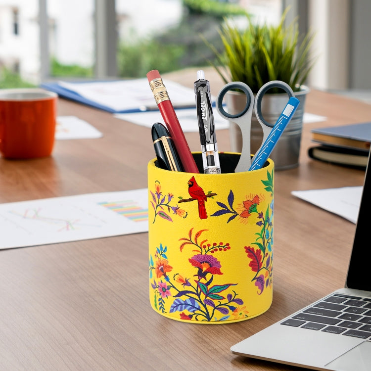 PU Leather Tool Storage Box Desktop Pen Holder(Birdsong)