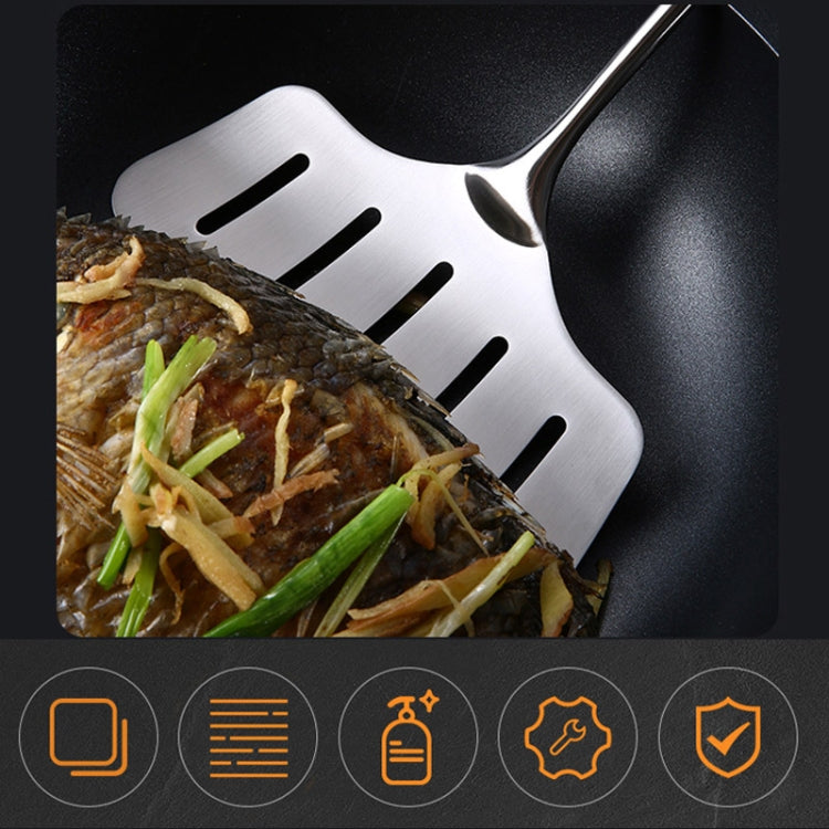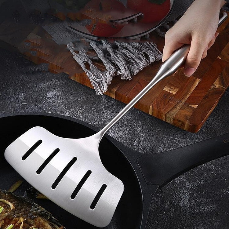 Stainless Steel Fried Fish Spatula Creative Leak Shovel Fried Steak Flat Spatula, Style:All Steel Handle