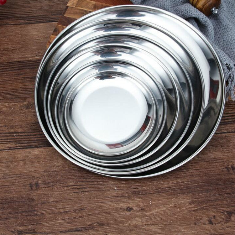 Stainless Steel Thickened Round Plate Cafe Tray Fruit Cake Plate Bone Plate Dish Shallow Plate, Diameter: 23cm, Style: Bright Mirror Silver